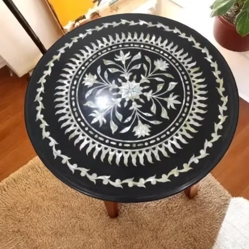 Add luxury and elegance to your living space with this handmade black marble round coffee table, featuring exquisite Mother of Pearl inlay work. Each piece is carefully crafted to highlight the natural beauty of marble and the iridescent charm of pearl, making it a unique centerpiece for your home, office, or lounge. Perfect for those who appreciate artisanal craftsmanship and timeless design.