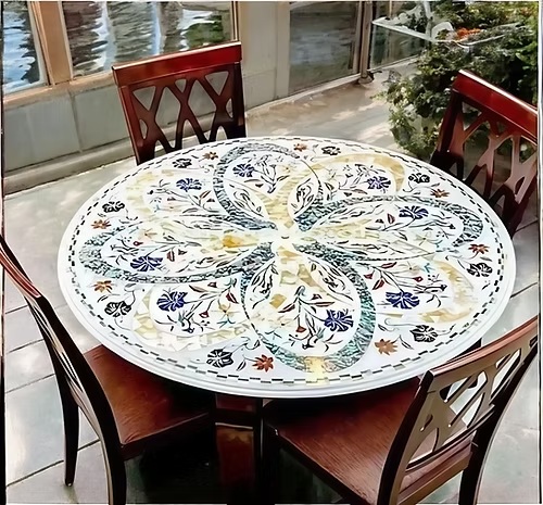 Material: Premium white marble with multi semi-precious gemstone inlay
