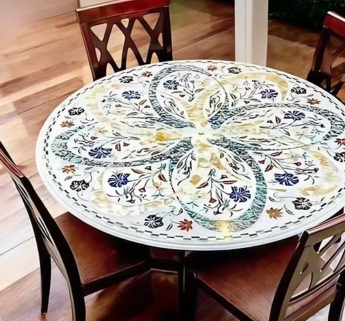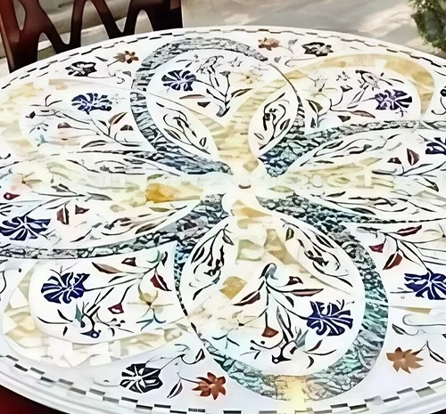 Marble Coffee Table Top – Handmade Inlay with Abalone Shell & Semi-Precious Stones