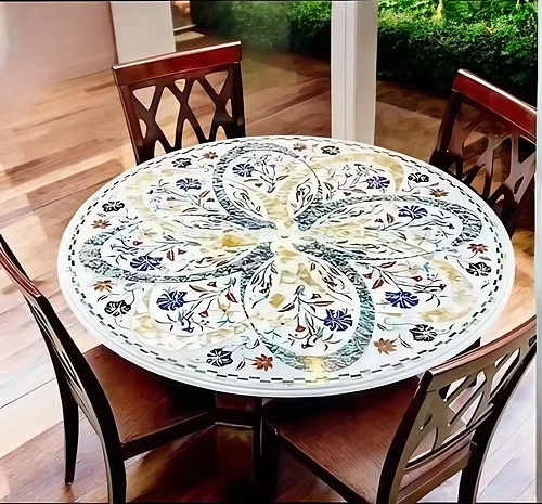 Handmade Marble Inlay Coffee Table Top – Featuring multi semi-precious gemstones, perfect for luxury home décor, coffee tables, or centerpieces.