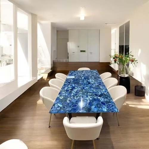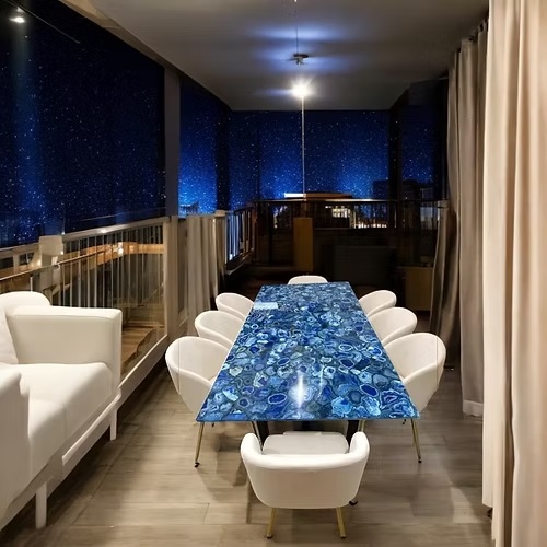 Natural Polished Blue Agate Dining Table Top – Handmade Home & Restaurant Decor