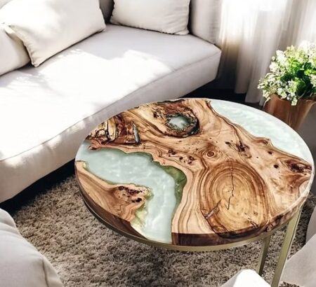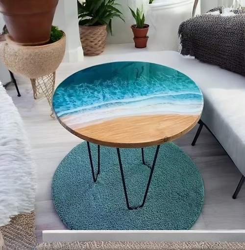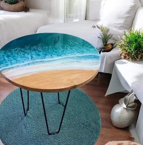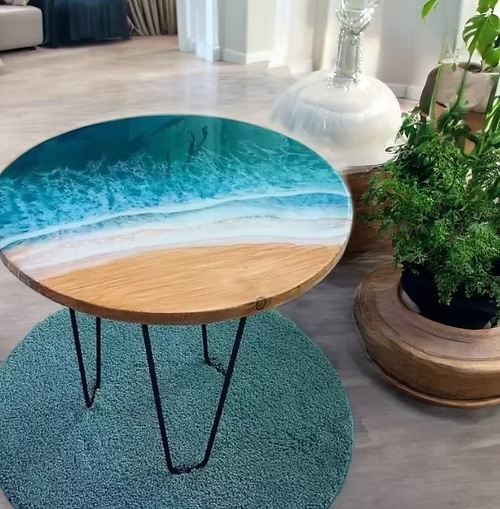 Round Ocean-Inspired Resin Coffee Table – Live Edge Handmade Table